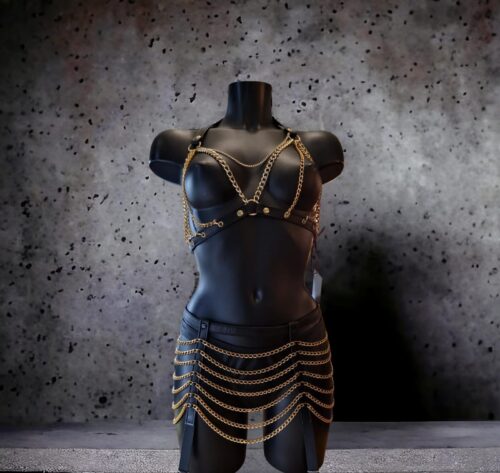 €299,00Gouden kettingen met zwart leder set
