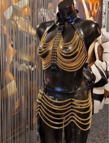 Lafayette jurk, in metallic blauw vinyl, is een ultra-glamoureus stuk dat moderniteit en sensualiteit combineert. Het glanzende materiaal vangt het licht en creëert een spiegeleffect dat elke beweging verbetert. Met een korte, nauwsluitende snit omsluit het perfect de rondingen en benadrukt het elegant en gedurfd het silhouet. De diepe V-halslijn versterkt de vrouwelijkheid, terwijl de dubbele schuifrits aan de voorkant je in staat stelt om de opening aan te passen voor een aanpasbare stijl. Mouwloos, biedt het veel bewegingsvrijheid en een onweerstaanbaar eigentijdse look.